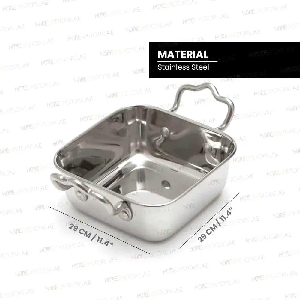 The American Metalcraft Stainless Steel Mini Roasting Pan (L 11.4 x W 11.4 x H 4 cm) - a versatile, durable, and stylish kitchen essential. Its premium stainless steel construction ensures even heat distribution for perfect results. Ideal for mini serving, pizzas, copper pans, and frying. With easy-to-grip handles, sleek design, and easy cleaning, elevate your culinary creations to impress guests and enjoy precision cooking.
