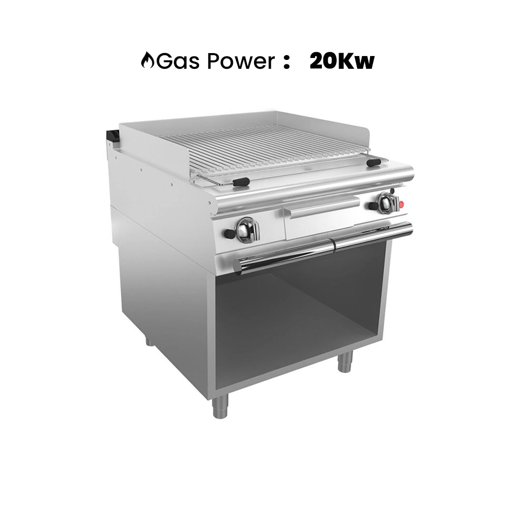 Baron Q70GLV/G800 S/S Gas Lava Rock Griller on Open Stand, Gas Power 20 kW, 80 x 70 x 87 cm