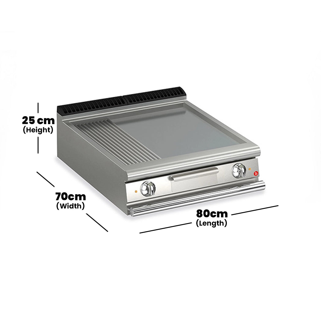 Baron S/S Electric Griddle 2/3 Smooth 1/3 Ribbed, 10.8 kW, 80 x 70 x 25 cm