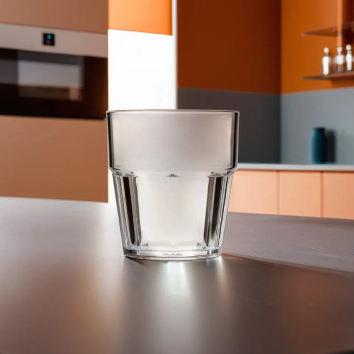 Made of strong polycarbonate, has an amazing inspired design that adds beauty to any decoration. It improves beverage presentation in hotels and restaurants thanks to its clear appearance and superb design. Its 250 ml size, combined with its elegance and durability, provides beauty for an unforgettable dining experience.