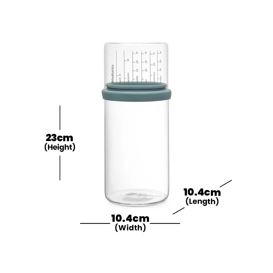 Brabantia Storage Glass Jar With Measuring Cup, 1L, Mint