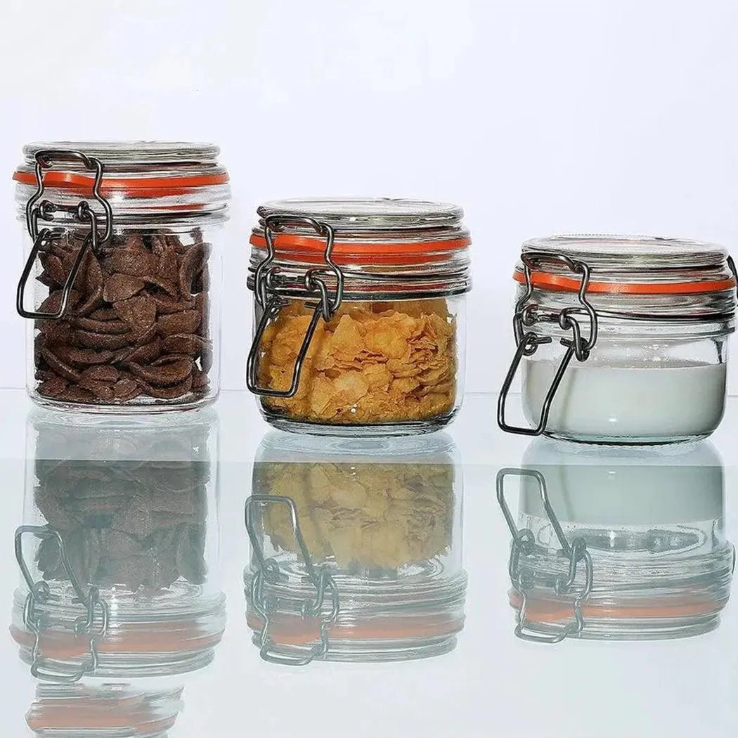Preserve Jar 200 ml Storage Container With Clear Preserving Seal Wire Clip Fastening For Kitchen Canning Cereal, Pasta, Sugar, Beans, Spice