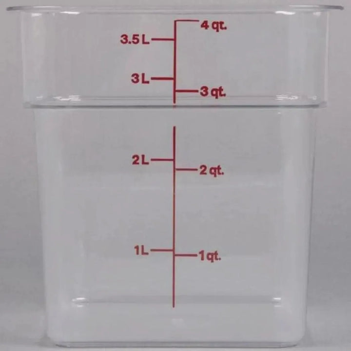 Discover the ultimate kitchen companion – the Cambro Camsquares Classic 4SFSCW135 Polycarbonate Food Storage Container. With its unbreakable durability, 3.8 L capacity, crystal-clear clarity, and stackable design, this container offers secure, versatile, and space-saving storage for all your ingredients. Its commercial-grade quality and bulk-saving set make it a must-have for chefs and professionals. Elevate your kitchen organization with this trusted Polycarbonate Food Storage Container today!