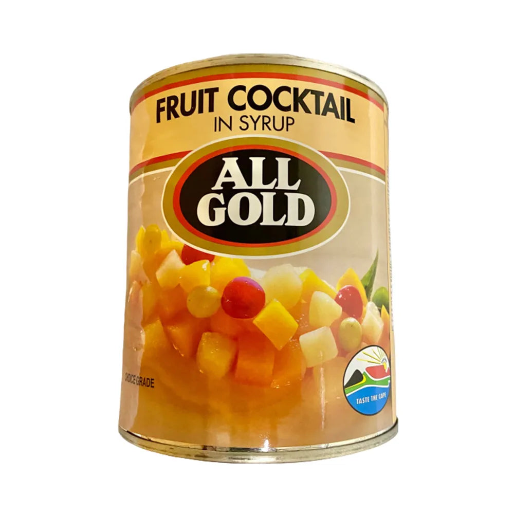 Indulge in the lush flavors of All Gold's Fruit Cocktail in Syrup, meticulously selected and preserved to ensure a perfect blend of taste in every 825g tin. Ideal for adding a luxurious touch to desserts or enhancing your dining offerings, this fruit cocktail is a favorite in hotels, restaurants, and catering businesses. Each tin contains a variety of sweet, succulent fruits, making it a versatile ingredient or a delightful standalone treat.
