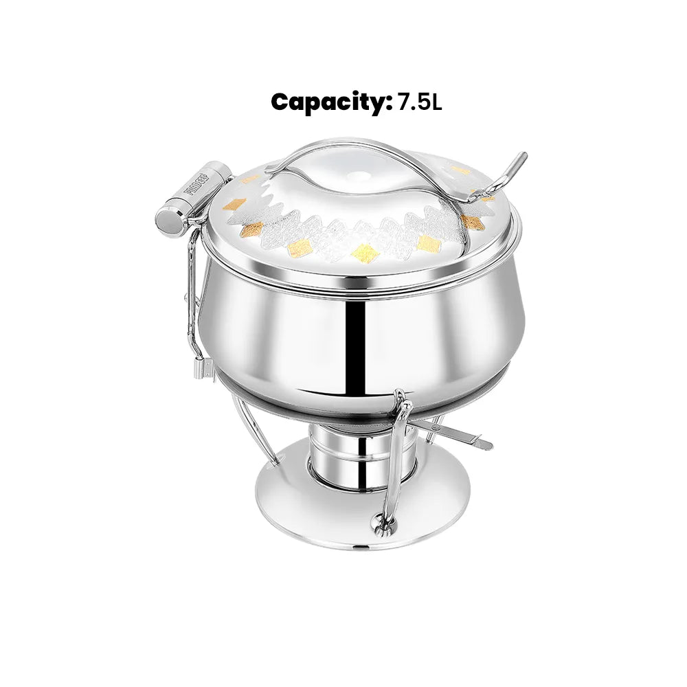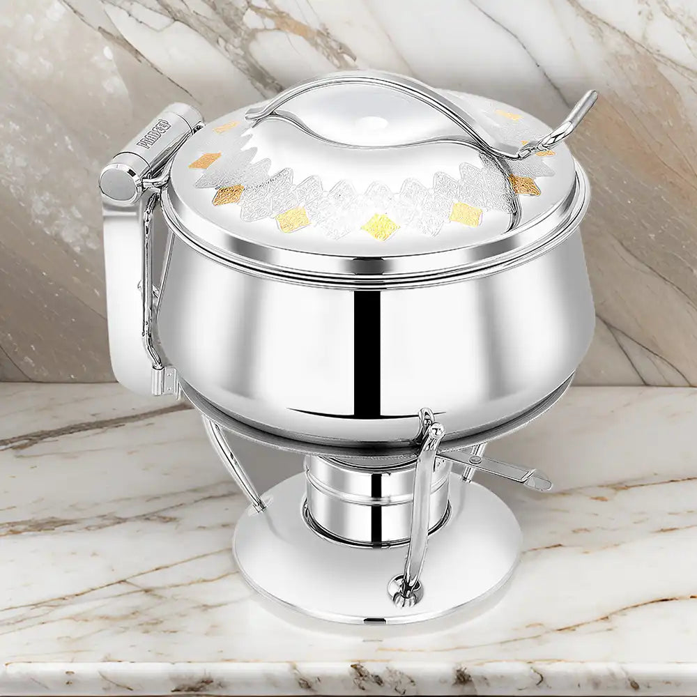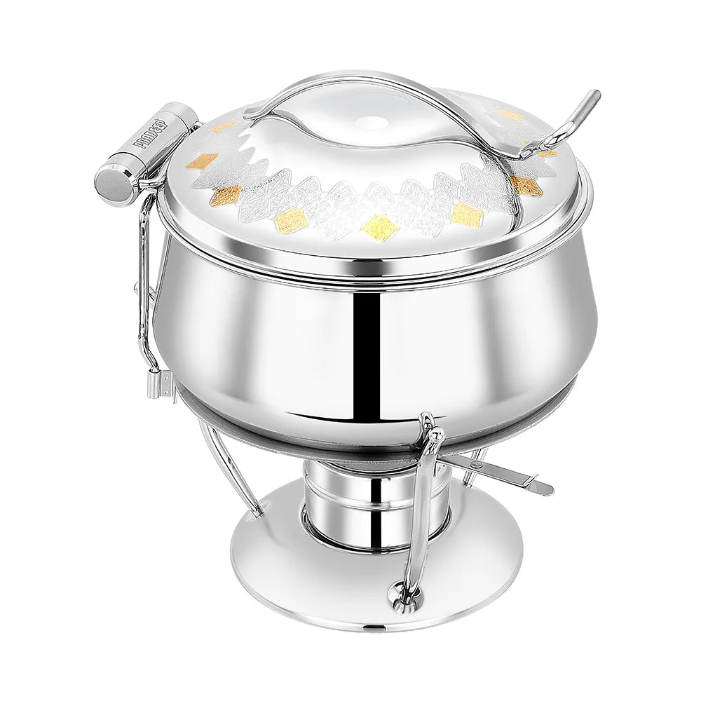 Ensuring meals remain warm and inviting, the Pradeep Samirah Chafer is a cornerstone for hospitality needs. Crafted from premium stainless steel, it combines durability with a lustrous finish. Ideal for a spectrum of events, its elegant design complements any setting. With a generous 7500 ml capacity, it accommodates a variety of dishes, bolstered by superior heat retention. Maintenance is a breeze, promising an enduring addition to your servingware.