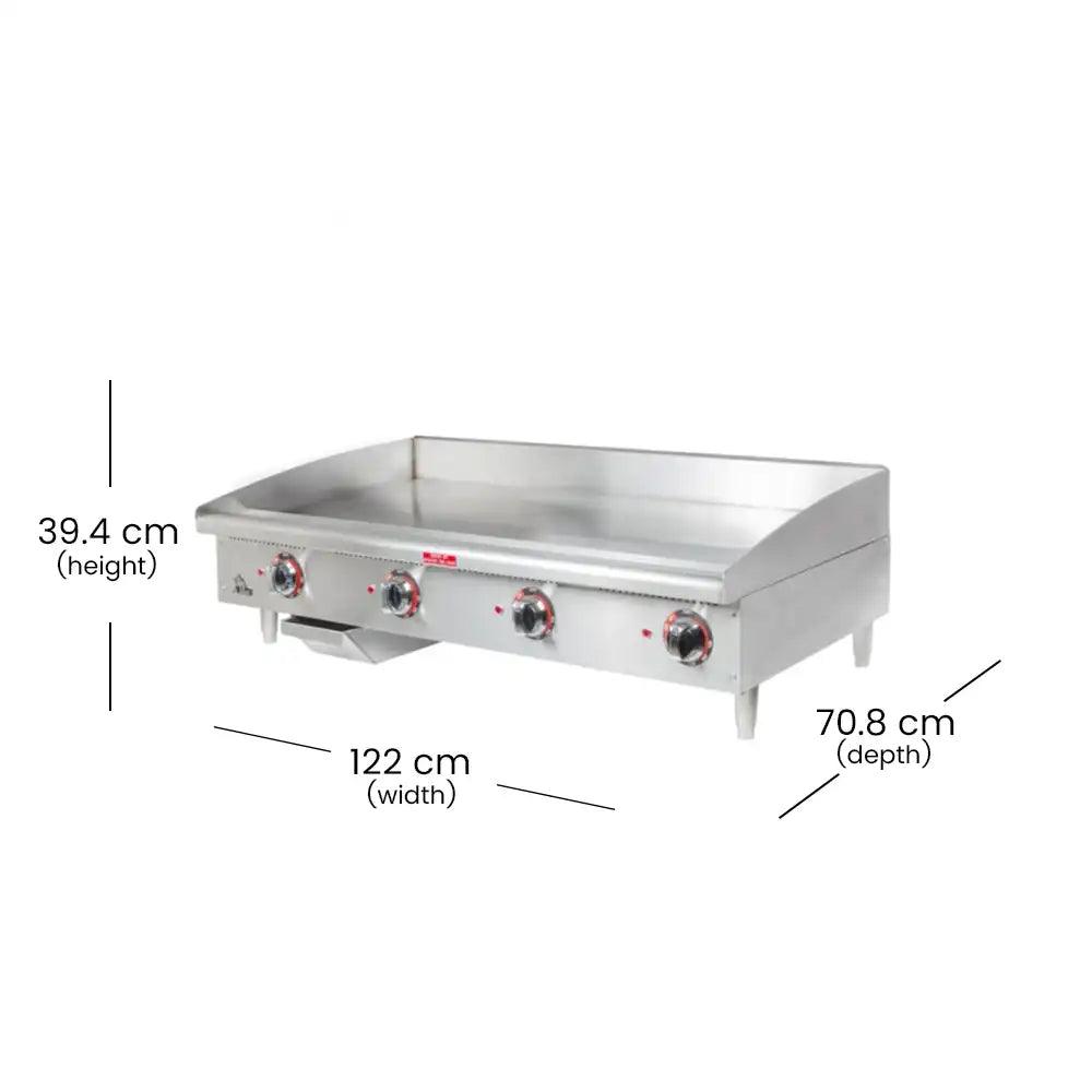 The Star Manufacturing USA 548TGF Gas Countertop Charbroiler, a culinary essential for cafes, hotels, and restaurants. Crafted with precision and durability, its modulating thermostat and stainless steel design ensure consistent cooking temperatures and enduring elegance. With 2 knobs control, chefs can achieve culinary excellence, creating flavorful dishes with perfect grill marks. Optimize space in bustling kitchens with this space-saving, efficient charbroiler, elevating the dining experience and impressing patrons with each masterfully grilled creation. Choose Star Manufacturing USA for reliability, control, and culinary finesse.