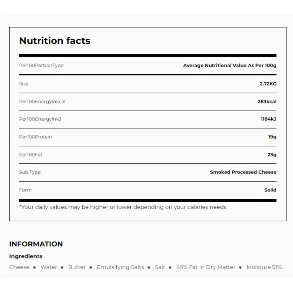 Frico's Smoked Dutch Cheese is a premium cheese celebrated for its rich and robust flavor, achieved through traditional smoking techniques. With a distinctive smoky aroma and creamy taste, this cheese adds depth to any culinary creation. Ideal for snacking alone or paired with crackers, it also enhances sandwiches, wraps, casseroles, soups, and salads, elevating their flavor profiles with its unique smokiness. Each package of approximately 3 kilograms ensures there's ample cheese for creating impressive cheese boards and incorporating into various dishes. Frico's Smoked Dutch Cheese is a versatile choice that brings a touch of tradition and a bold flavor to every meal and snack.