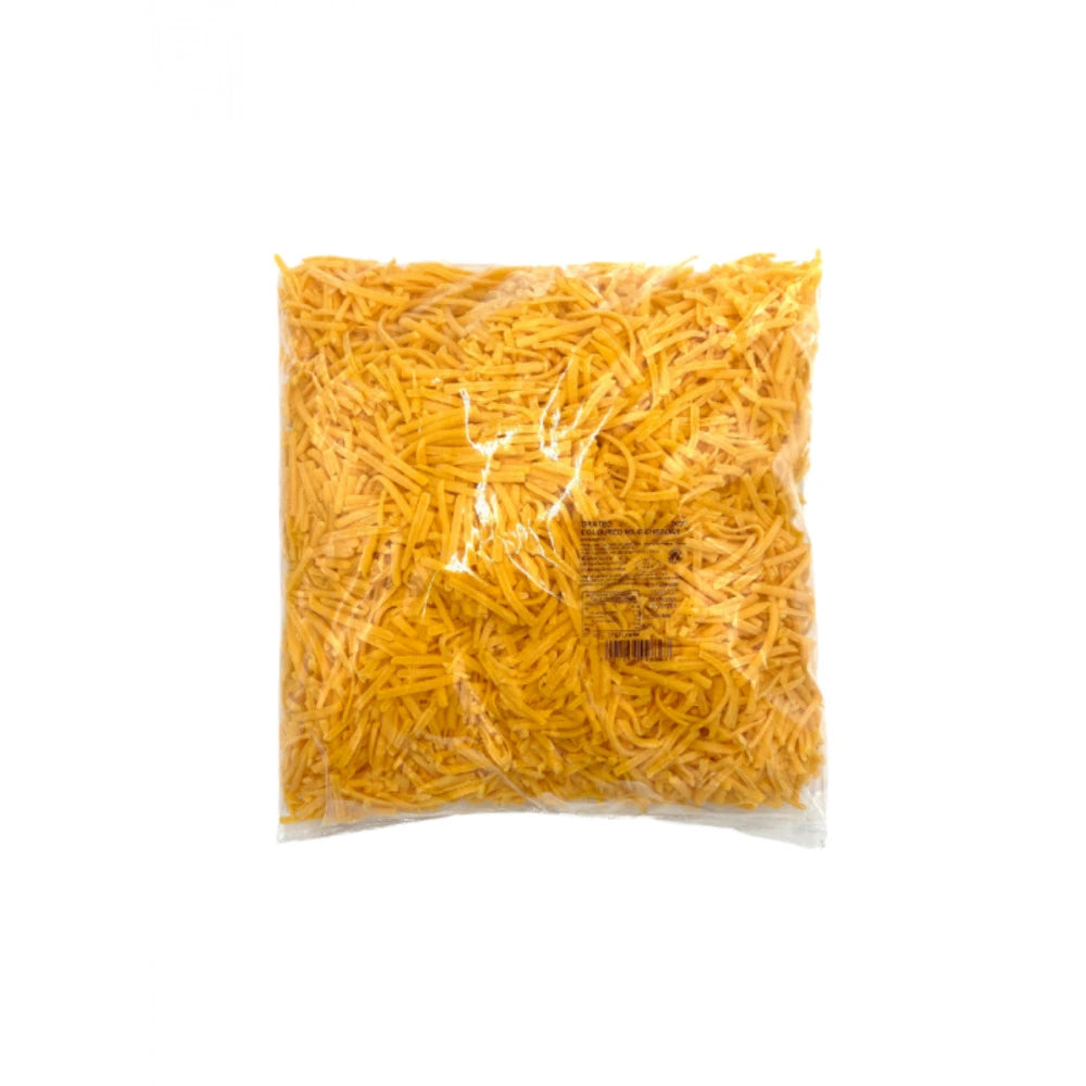Shredded Red Cheddar Cheese offers a rich, bold flavor and smooth texture, beloved for its vibrant red color that enhances the visual appeal of dishes. Conveniently shredded, this cheese is ready-to-use and ideal for a variety of culinary applications. It melts easily into creamy cheese sauces for pasta or vegetables and adds a delicious topping to homemade or store-bought pizzas. Perfect for cooking in casseroles, baked dishes, and gratins, it also serves well as a topping for salads, soups, and chili. Each 2-kilogram package of shredded red cheddar cheese ensures ample supply for both home and professional kitchens, allowing for versatile and creative cooking possibilities that elevate any dish with its distinctive flavor and eye-catching color.