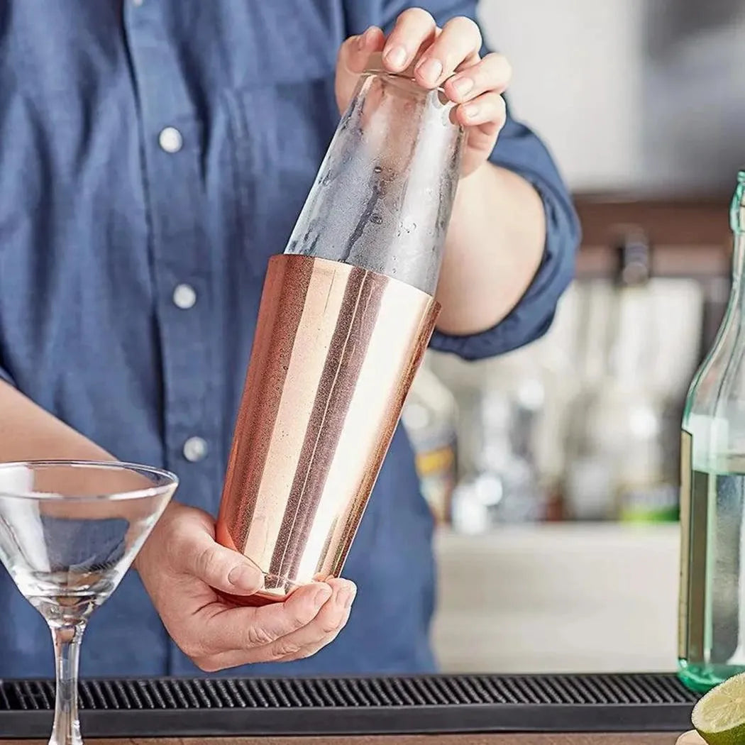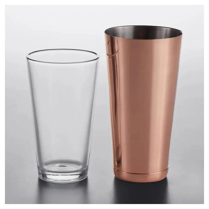 THS BAH1029 Copper Plated Boston bar Shaker with Weighted Base Plus Boston Shaker Glass 80cl/50cl, Set of 2