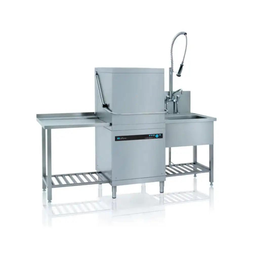 The Meiko UPSTER H 500, a powerful and efficient Stainless Steel Hood Type Glass and Dish Washer designed for cafes, hotels, and restaurants. With a robust 12 kW 3-phase electric power, compact dimensions (63 x 147 x 75 cm), and eco-friendly features, this dishwasher ensures superior cleaning performance while maximizing space and minimizing environmental impact. Upgrade your kitchen with Meiko's sleek and durable solution for a seamless, sustainable, and sophisticated operation.