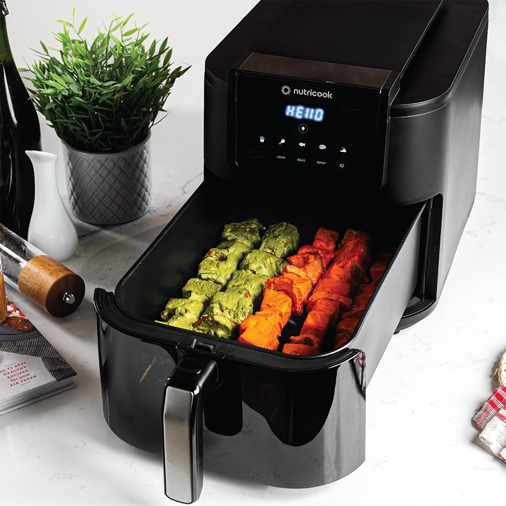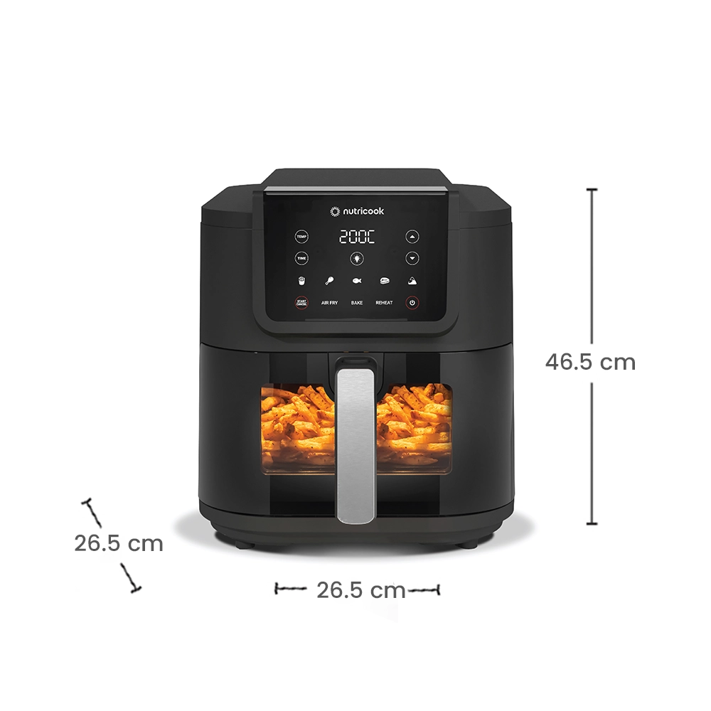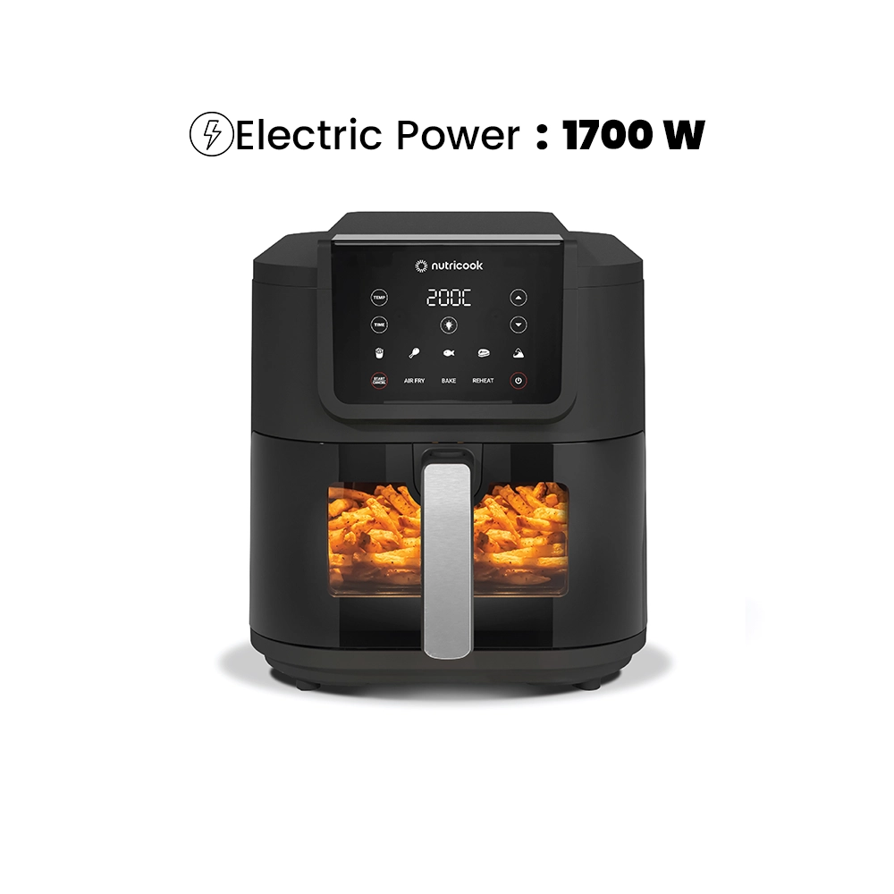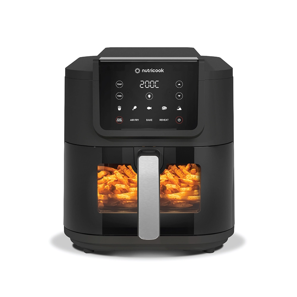 Enhance your cooking space with the Nutricook Air Fryer AFS200, a slender yet spacious solution tailored for the hotels, restaurants, and catering industry's demands. Its large 7.6 L basket intelligently take in substantial portions, fitting two whole chickens or 2 kg of fries, making it ideal for family-sized servings. Designed to optimize kitchen space, the appliance’s sleek 26.5cm width ensures a minor countertop footprint. The clear window panel enables precision monitoring of culinary creations, morphing meal preparation into an effortless task. Outfitted with eight versatile cooking settings, this 1700 W mechanism elevates the culinary experience, offering unmatched convenience followed by an easy-to-clean, dishwasher-safe basket and tray.