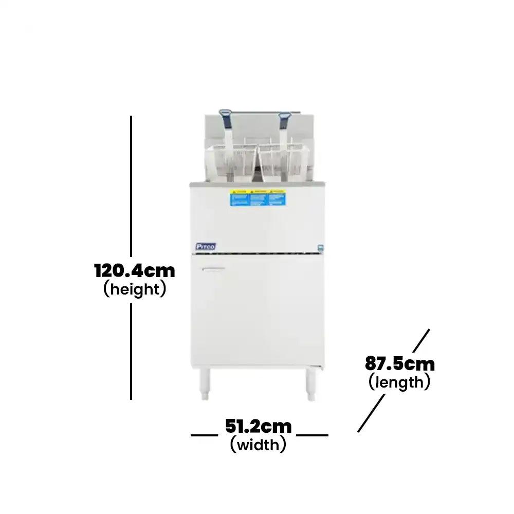 • Compact 51.2 x 87.5 x 120.4 cm design maximizes frying capacity without sacrificing space.