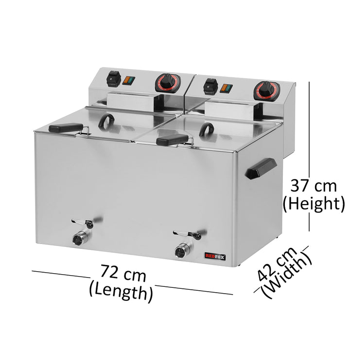 RM Gastro Double Basket Electric Fryer with Oil Draining Tap, 16 L, 6 kW, 54 x 42 x 30 cm