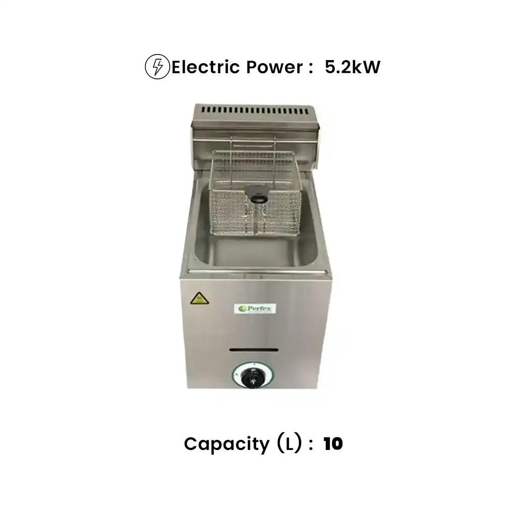 The THS GF-101 Gas Fryer Single, a stainless steel powerhouse designed for cafes, hotels, and restaurants. With heavy-duty elements, precise temperature control, and a compact 10-liter capacity, this fryer elevates culinary experiences. Measuring just 28.5 x 47 x 48 cm, it's a space-saving solution for professionals who seek uncompromising quality in their kitchen arsenal. Master the art of frying with Mariot GF-101—where precision meets durability for unparalleled performance in culinary spaces.