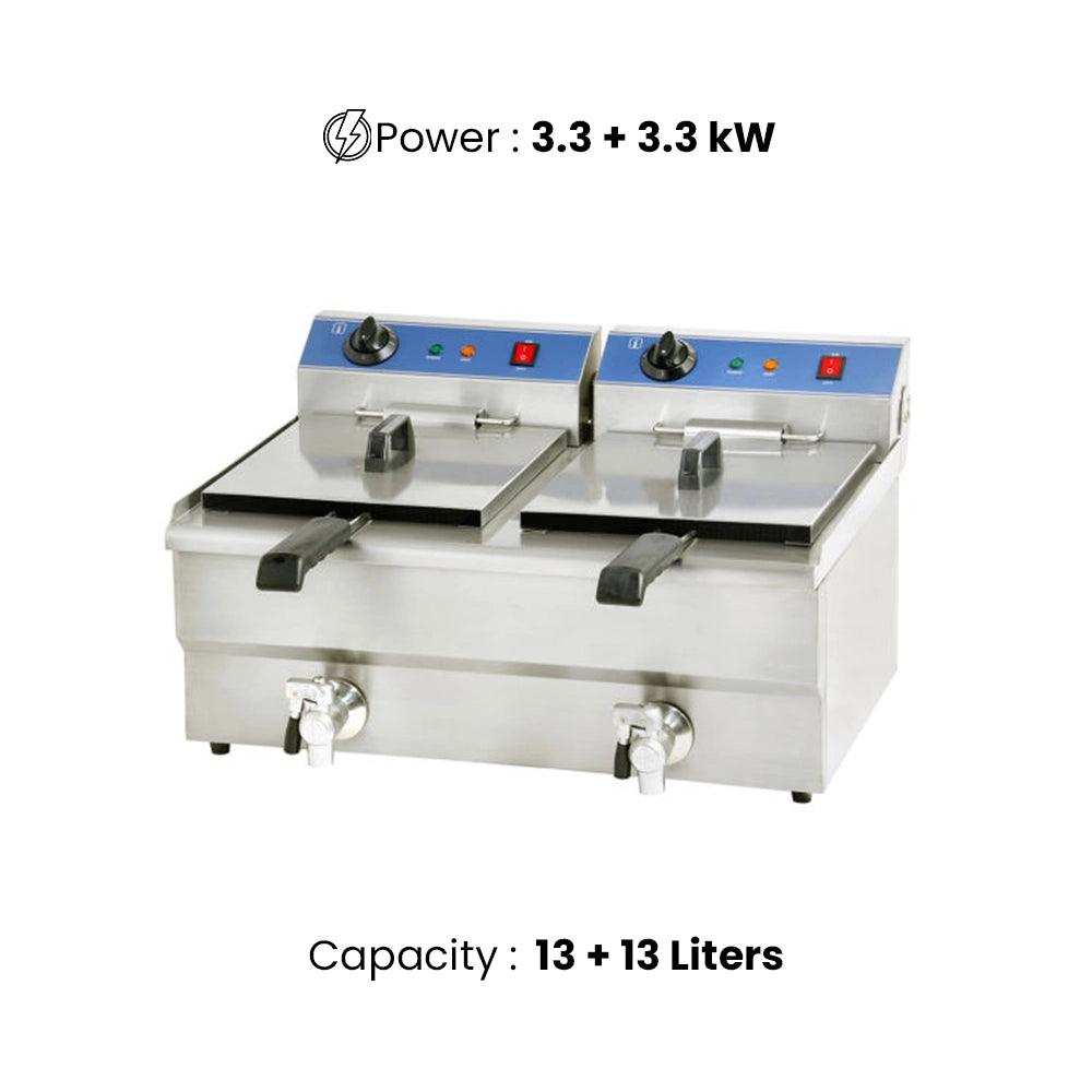 • Offers two 13 liters tanks for simultaneous frying.