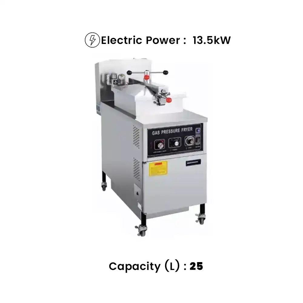 • Electric pressure fryer ensures quick, even cooking for crispy results.