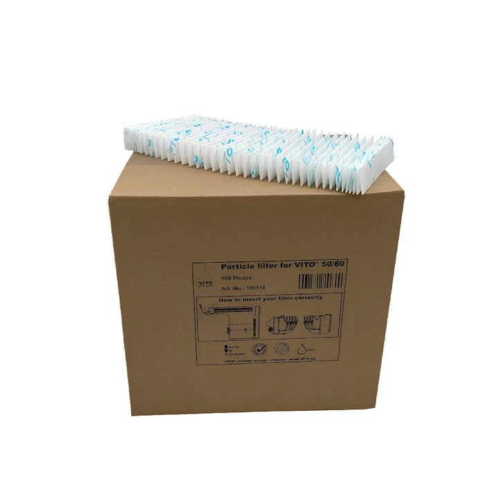 VITO particle filters improve VITO 50/80/VM/VL fryer oil filter machines by collecting filtered particles. These biodegradable cellulose filters are ideal for hotels and restaurants, as they fit within units and allow for many filtration cycles. They ensure cleaner oil, extending its life and maintaining food quality, resulting in customer happiness and cost savings.