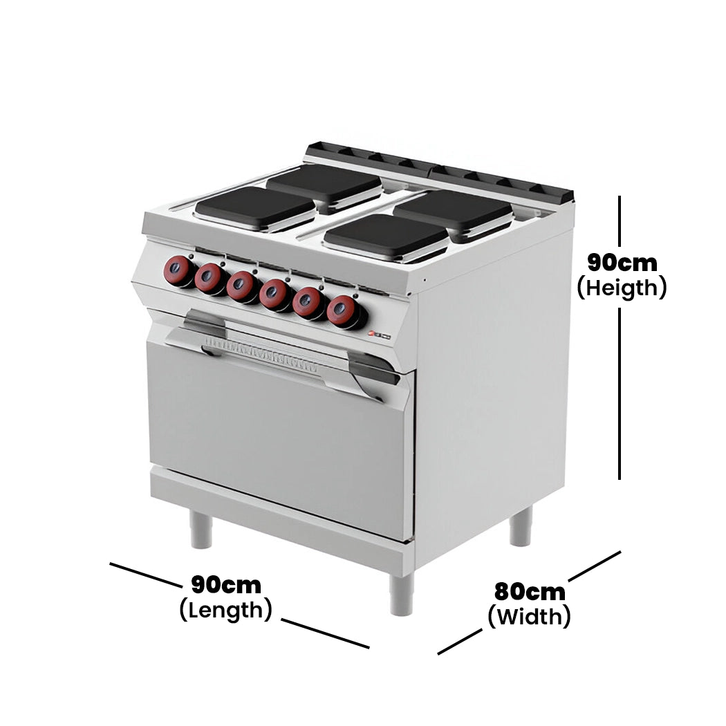 • Features 4 hot plates on an electric oven for high-volume cooking.