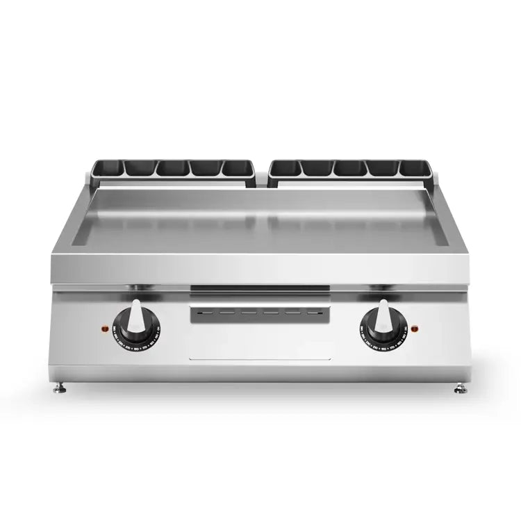 • 1/3 Smooth Plate, 2/3 Ribbed Plate: Features a combination of smooth and ribbed cooking surfaces, offering versatile grilling options for different types of food.