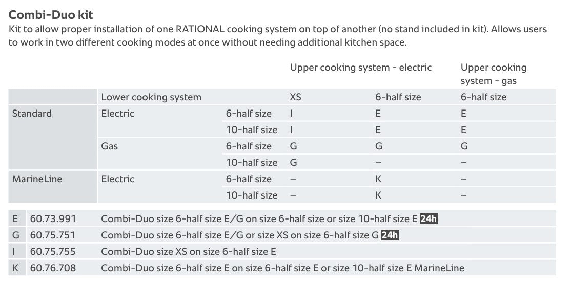 Rational Combi-Duo Kit Electro 6-1/1, 6-1/1 and 10-1/1 (Oven Not Included)