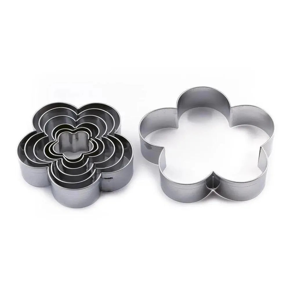 THS Stainless Steel Pastry And Cookie Cutters Flower Shape Set Of 9Pcs, H 4.5CM Assorted Sizes