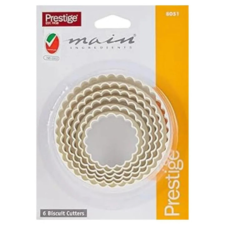 Indulge in the unparalleled convenience and precision offered by the Prestige Plastic Biscuit Cutter set, a must-have for all your baking undertakings, engineered to provide exactness in every cut. Despite their impressive precision, these cutters weigh a mere ‎400 g, combining lightweight portability with exceptional durability attributed to their top-tier plastic construction. This set of 6 cutters serves as a versatile asset in any professional kitchen, seamlessly elevating efficiency levels in diverse environments