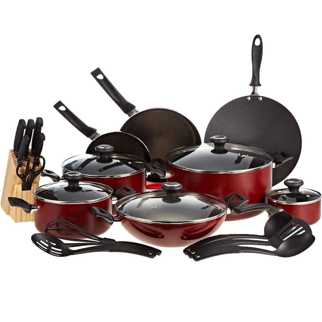 Prestige Aluminum Non-Stick Cookware Set, Red, 25Pcs