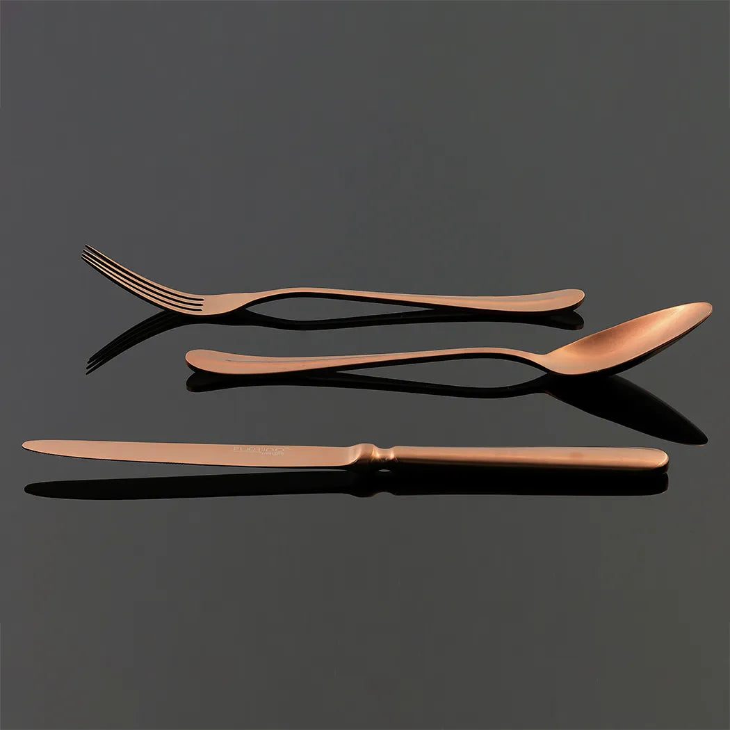 The Furtino England Baguette 18/10 Stainless Steel Dessert Fork set, a versatile and elegant addition to any table setting. Crafted with premium 18/10 stainless steel, this pack of 6 forks comes in matt copper finish. With a timeless design, comfortable grip, and durability, it's perfect for desserts and more. Whether hosting gatherings or seeking a thoughtful gift, elevate your dining experience with this exquisite dessert cutlery set.