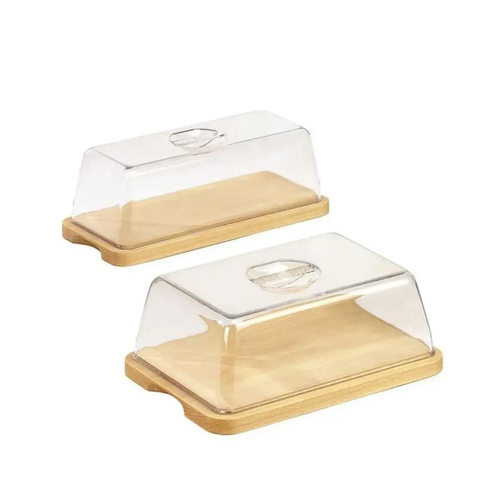 Bisetti 13250 Beechwood & Plastic Rectangular Cheese Holder With Bell 31 X 19.5 X 12CM