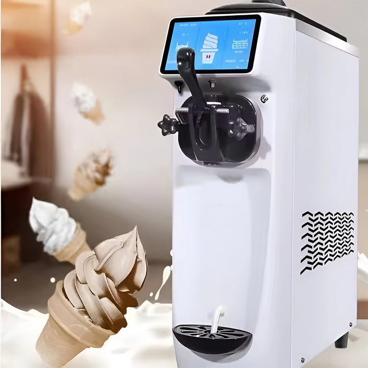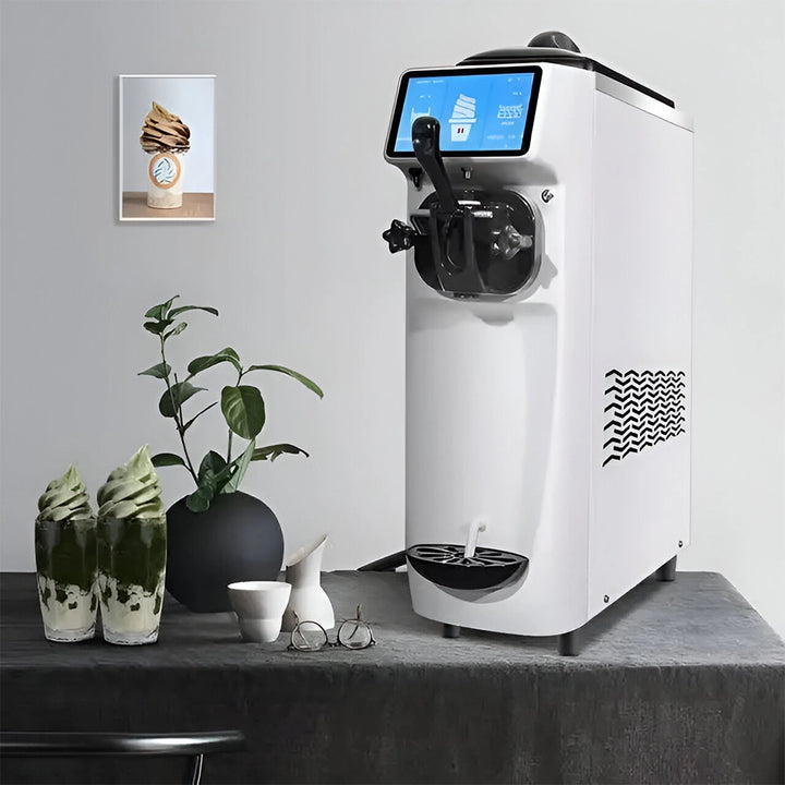 The Gelato Soft Ice Cream Machine is a compact ice cream machine designed for small businesses or personal use, producing 16 liters per hour. It features advanced controls, easy cleaning, and eco-friendly refrigerant. Made by Gelato Brand and assembled in China, it's a great option for those seeking a reliable and efficient soft ice cream machine.