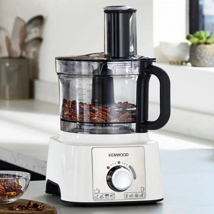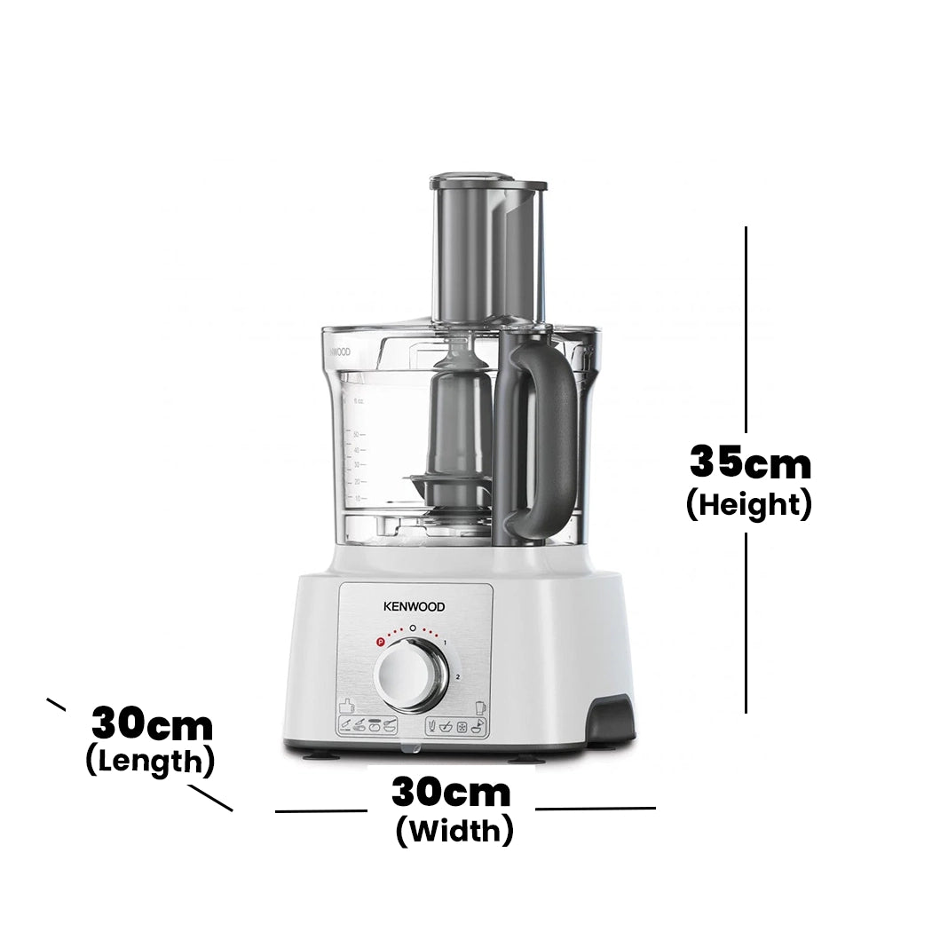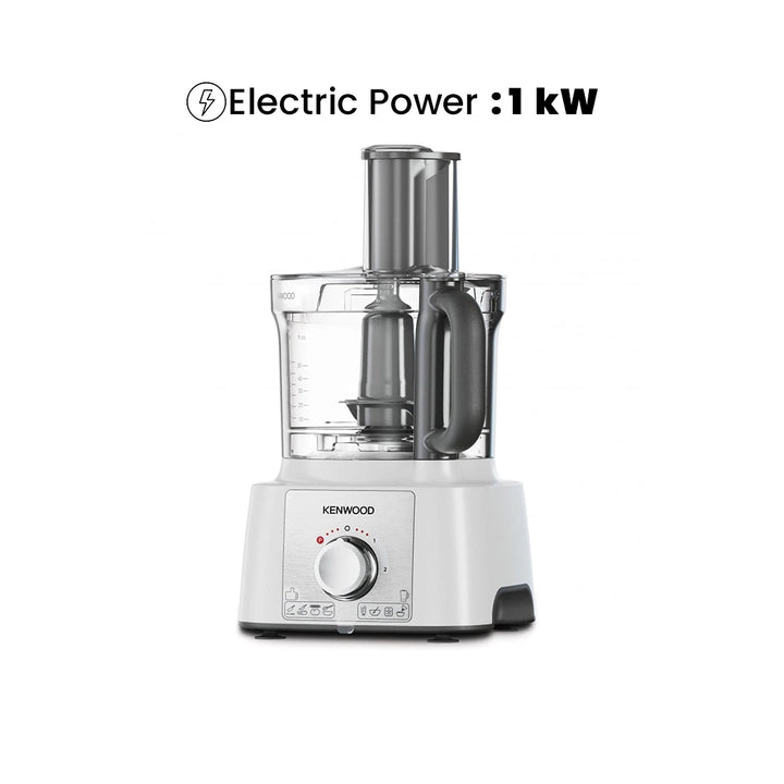 The Kenwood FDP65.400WH, also known as the MultiPro Express, is a culinary powerhouse that simplifies meal preparation. Its 1000 W motor drives 2 straight and 2 blending blades for efficient blending, chopping, and grinding. The 2-speed settings offer flexibility for different foods. Enjoy its easy-to-grip handle, dishwasher-safe stainless steel shaft, and beaker. Safety features like the Safety Lock Unit and Overheat Protection make it a reliable kitchen companion.
