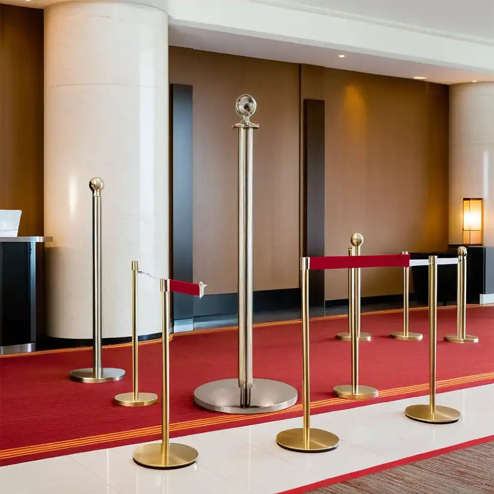 Crowd Control Barrier Stanchions Pole Stainless Steel, Resistant To Moisture, Rust, Corrosion, And High Temperature. Stable Base, Color Gold