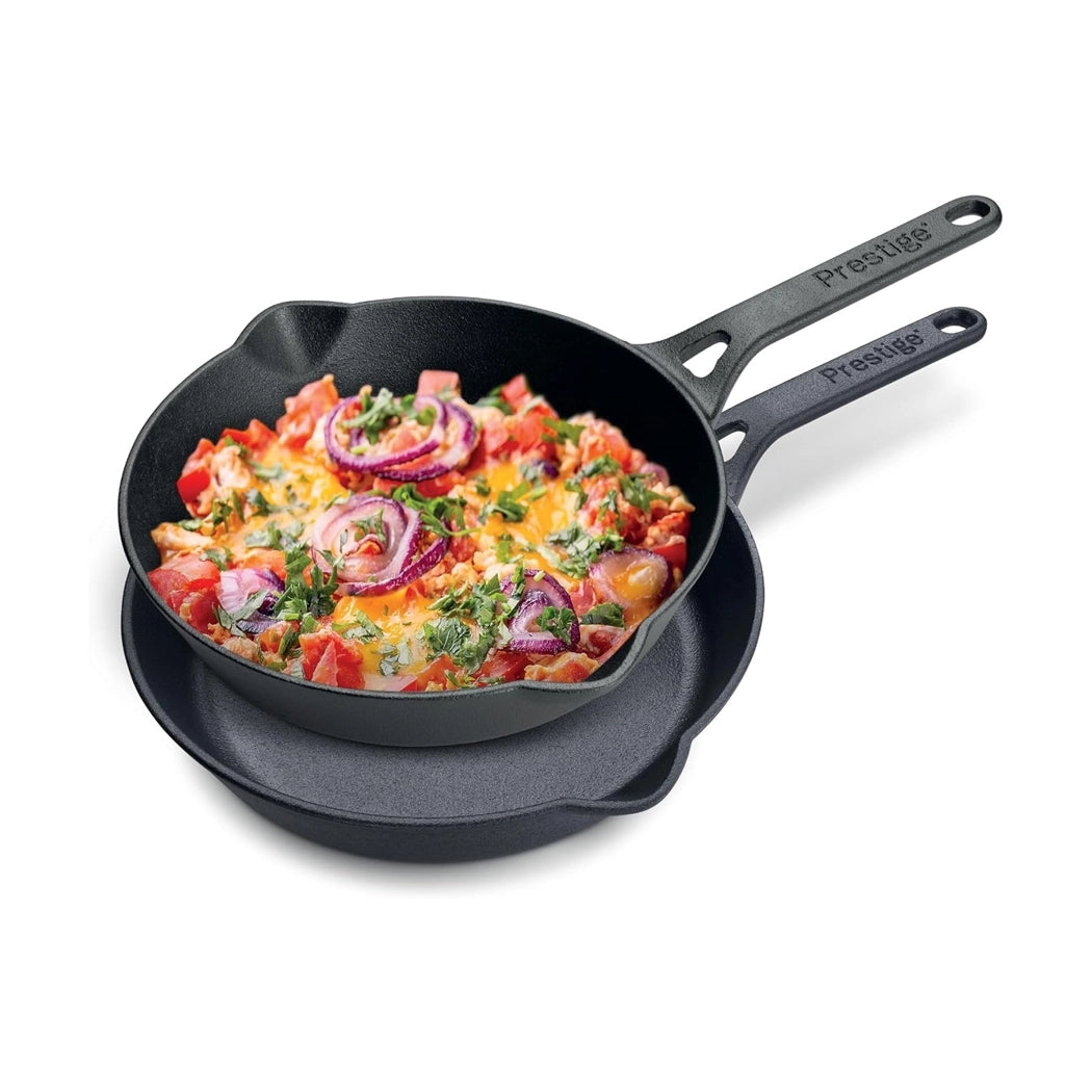 The Prestige Cast Iron 2Pcs Set provides numerous cooking options for hotels and restaurants, with hobs, ovens, and BBQs. It comes pre-seasoned with vegetable oil, which creates a natural nonstick surface while reducing oil usage. Its sturdy construction and induction compatibility make it an excellent choice for professional kitchens.