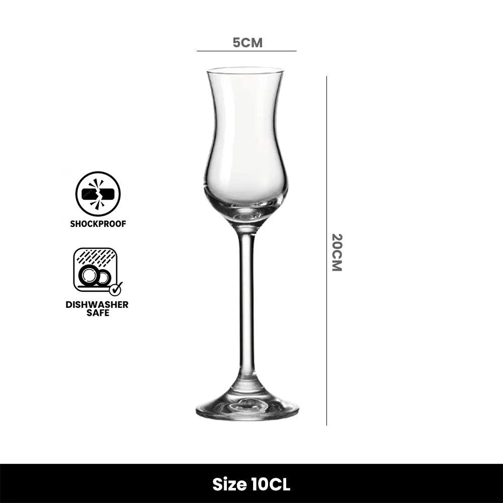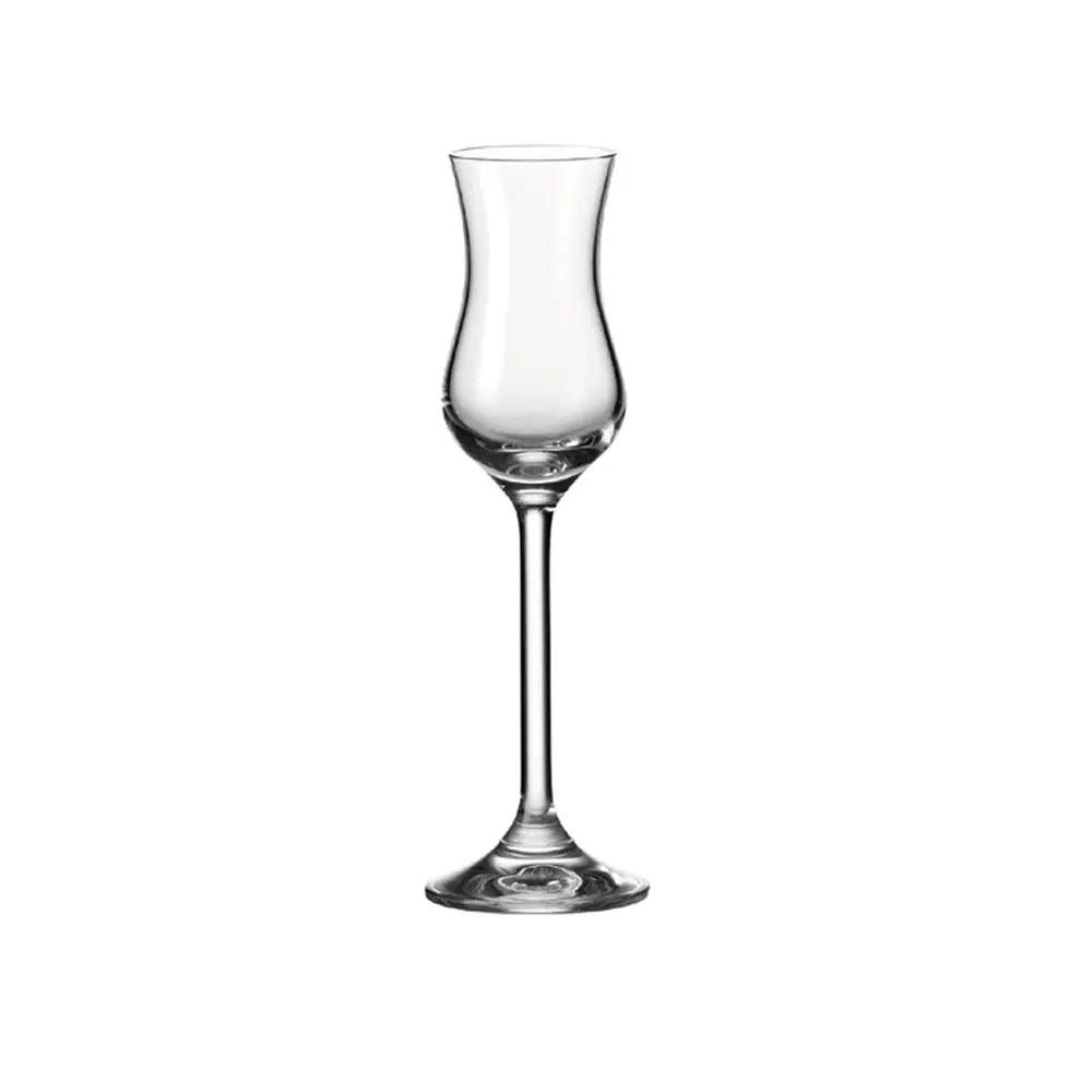 The Leonardo Daily Grappa Glass (10 cl) - Pack of 6 from Horecastore, a Barware company offering premium glassware for cocktails, wine, tequila shorts, martinis, beer, brandy, and margaritas. Crafted with precision, these elegant glasses feature a 10 cl capacity, adding sophistication to any occasion. Ideal as a gift, explore Horecastore's custom Barware accessories for a personalized touch. Elevate your drinking experience with these versatile and stylish glassware sets.