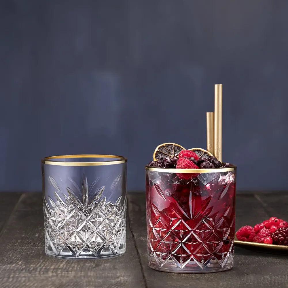 • Gold-rimmed whisky glass for elevated sipping experience.