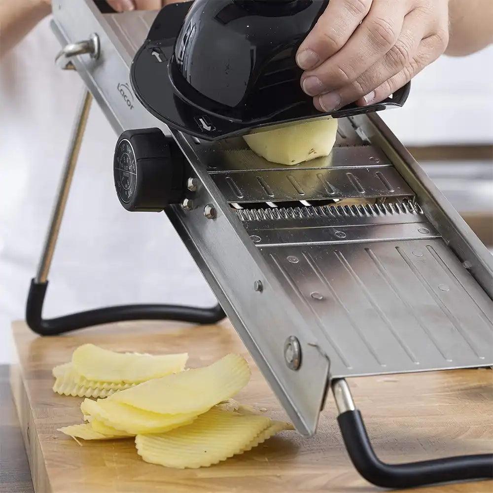 Elevate your culinary expertise with the Lacor Spain 60357 Stainless Steel Mandoline With Protector. This sleek kitchen essential offers precision slicing, julienning, and waffle cutting, ensuring uniform results every time. Crafted for durability, it seamlessly blends style with safety, safeguarding your fingers during use. Upgrade your kitchen arsenal and unlock a world of possibilities with this professional-grade Mandoline With Protector.