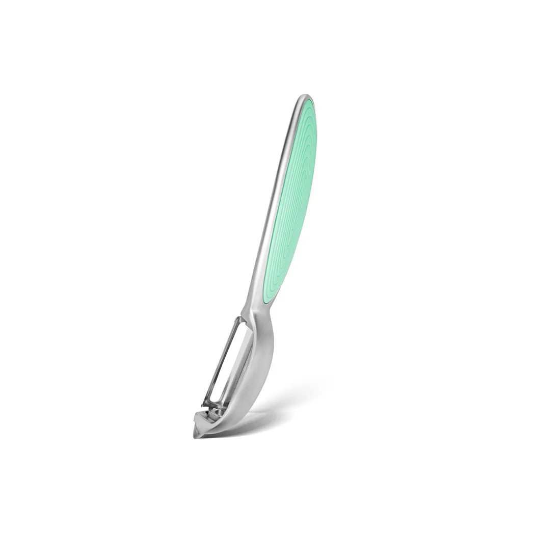 • P-shaped peeler from Fissmans Luminica Series, crafted with green/silver zinc alloy.