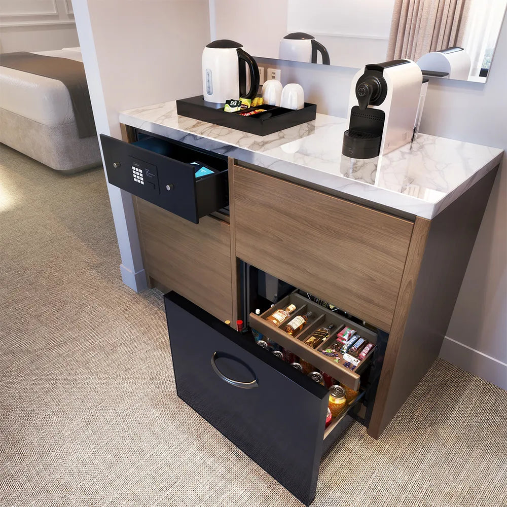 Roomwell UK High Cool Absorption Minibar, Solid Door 40 Liters, H 55.8 x W 40 x D 42.5 cm, 100% Silent, Ultra-Cooling, CFC/HCFC Free, Color Black