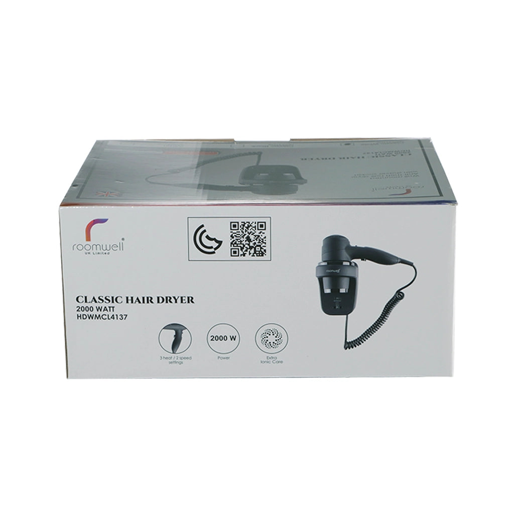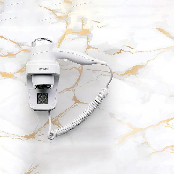 Elevate your guests' daily routine with the Roomwell Classic 1800 W Wall Mounted Hair Dryer. This high-power, anti-theft hair dryer in stylish white boasts a long-life motor, a shaver socket for added convenience, and adjustable heat and speed settings. Your guests will surely enjoy salon-quality results and a touch of luxury in your hotel, all while ensuring beauty essentials stay secure. Upgrade to the Roomwell Classic to let your guests experience sleek, professional styling with ease.