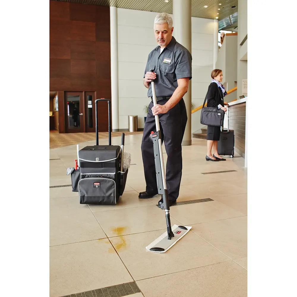 Elevate hotel housekeeping with the Rubbermaid 1902466 Nylon Heavy Duty Executive Quick Cart. Its heavy-duty nylon construction ensures durability, while repells water, oil, and stains to keep it looking pristine. The sleek executive design, telescopic handle, and 4 swivel non-marking wheels offer efficiency and professionalism. Upgrade your housekeeping gear with this 16.50 x 14.25 x 21-inch cart designed for hotel excellence.