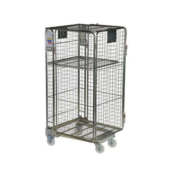 VM Roll Cage Nestable L 80 x W 60 x H 160 cm, Galvanised Steel Container, Adjustable Partitions, Silver