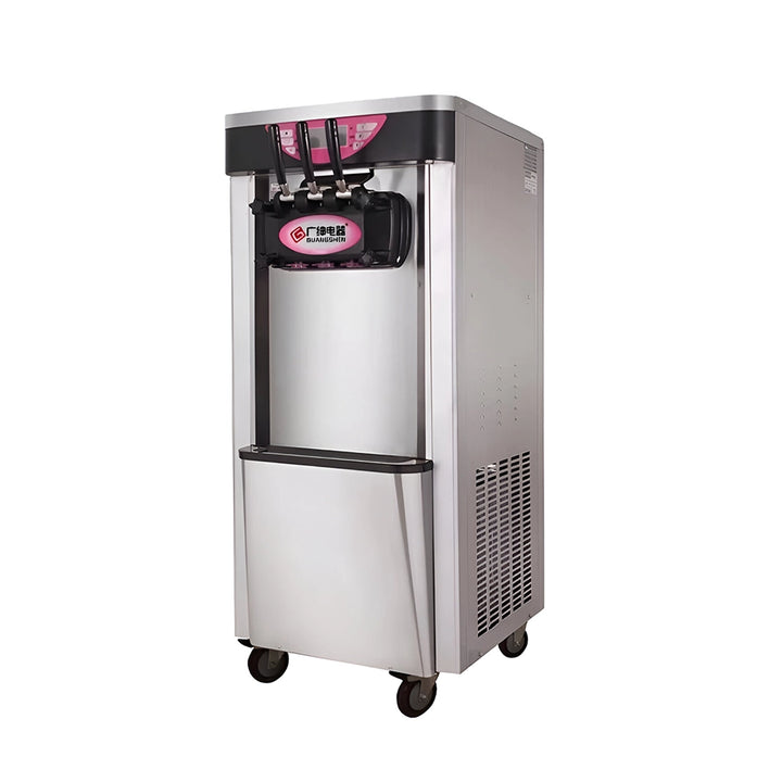 The Gelato Soft Ice Cream Machine is a high-capacity ice cream machine designed for commercial use, producing 20-25 liters per hour. It features advanced controls, multiple flavors and shapes, and eco-friendly refrigerant. Made by Gelato Brand and assembled in China, it's a great option for businesses seeking a reliable and efficient soft ice cream machine.