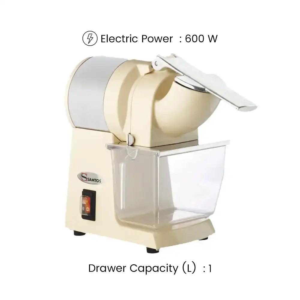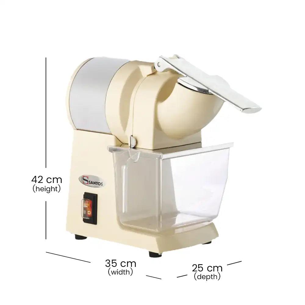 Elevate your cafe, hotel, or restaurant experience with the Santos Stainless Steel and Aluminium Ice Shaver. This sleek appliance boasts a powerful 600 W motor, creating a perfect blend of functionality and style. Craft refreshing iced beverages, delightful desserts, and signature cocktails effortlessly, ensuring your establishment stands out. Invest in the Santos Ice Shaver for a compact (42 x 25 x 35 cm) and durable solution that guarantees a lasting impression on your patrons.