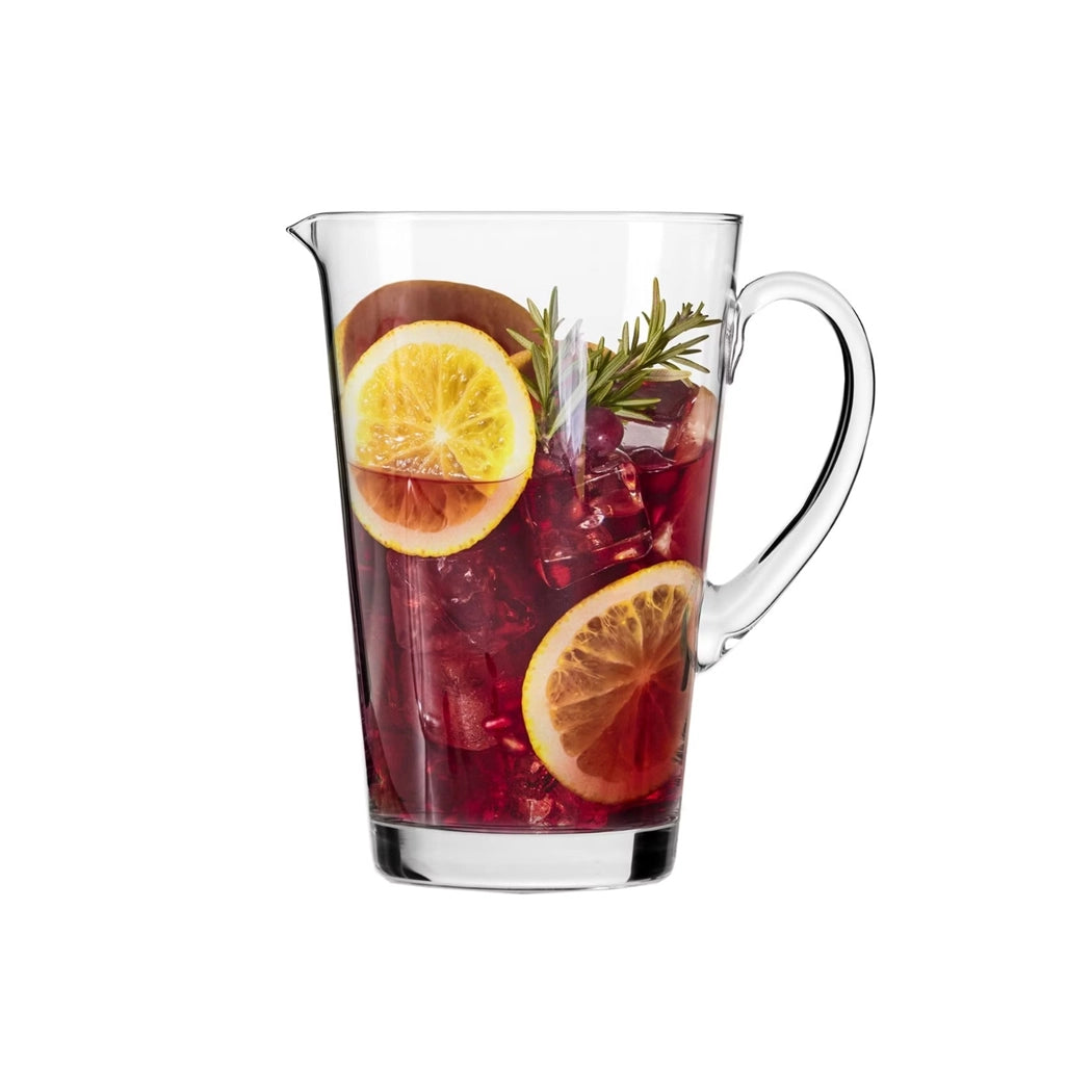 Krosno Avant-Garde Jug 1 L Crystalline glass jug ideal for serving cold drinks. Its elegant flared shape and high-gloss finish enhance visibility and style. Features include an ergonomic handle for easy use, a contoured spout for spill-free pouring, and a stable base for secure placement. Perfect for any occasion, combining craftsmanship with practical design.
