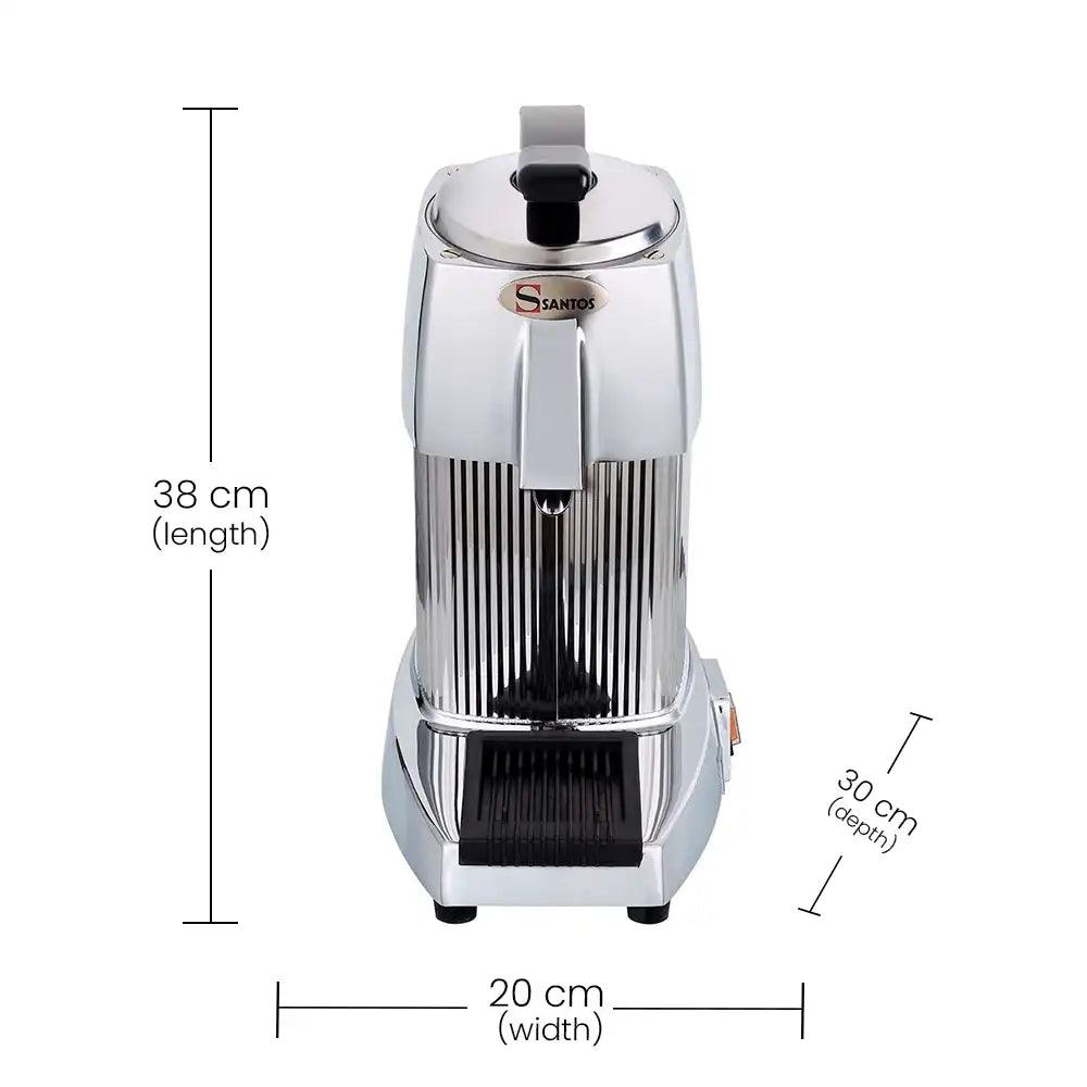 Introducing the Santos Stainless Steel & Aluminium Electric Citrus Juicer – a 230 W Heavy Duty Classic designed for cafes, hotels, and restaurants. Elevate your beverage service with this stylish and powerful juicer, boasting stainless steel and aluminium construction. Its compact W 20 x H 38 cm dimensions make it ideal for space optimization, while the lever mechanism ensures a seamless and efficient juicing experience. Impress your customers and invest in excellence with the Santos Citrus Juicer for the perfect blend of sophistication and performance.