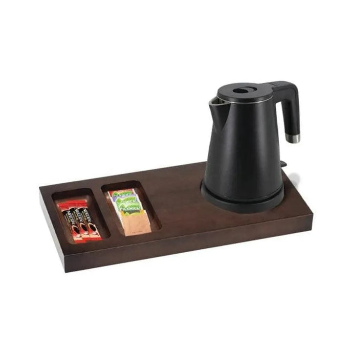 Elevate guest experience with the Roomwell UK Merlyn Welcome Tray. Crafted from beechwood in a rich mahogany hue, this hotel welcome tray features a built-in condiment holder and elegant design. Enhance room ambiance while offering functional convenience. Make a lasting impression on guests with this durable, sophisticated addition to hospitality. Order now for an unforgettable welcome.