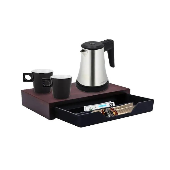 Elevate guest hospitality with the Roomwell UK Space Saver Plus Welcome Tray. Its mahogany elegance, L 15.8 x W 26 x H 4.6 cm design, and thoughtful practicality offer a warm reception in limited spaces. Crafted for hotels, this durable and versatile tray adds sophistication to rooms, creating memorable stays for every guest.