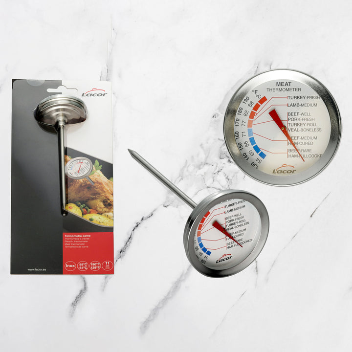 Elevate your culinary skills with the Lacor Spain 62452 Meat Thermometer. This stainless steel wonder ensures precision in cooking, making every meat dish a masterpiece. Say goodbye to overdone or undercooked meals and cook like a pro with this essential tool for enthusiasts and home chefs. Perfectly cooked meats are just a thermometer away!