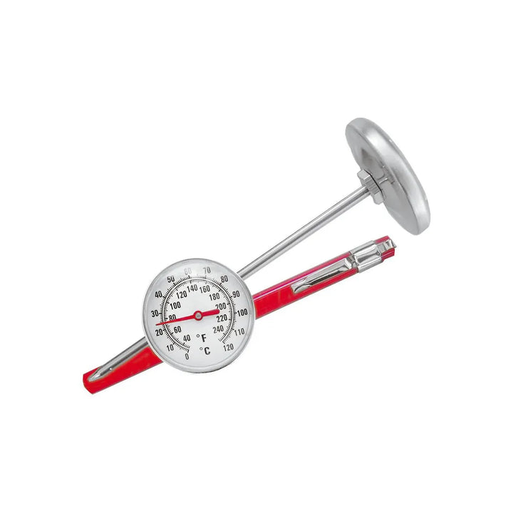 The Paderno Meat Roasting Thermometer ensures perfectly cooked meat every time. Its accurate temperature measurement and clear dial markings make it easy to use. The stainless steel probe is durable and resistant to corrosion. Simply insert the probe into the thickest part of the meat to get a precise reading. Part of Paderno's comprehensive range of tools and utensils, the Meat Roasting Thermometer is a must-have for any kitchen.