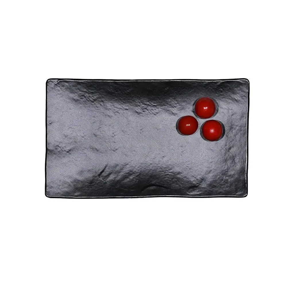 Elevate your dining experience with the Melamine Hammered Platter in a stunning 10.8" black design. This exquisite serveware adds timeless elegance to any table setting, impressing guests and enhancing your culinary presentations. Crafted to perfection, it seamlessly blends style and functionality, making it a must-have addition to your collection. Elevate every occasion and serve your creations on this black beauty, setting the stage for memorable dining moments.